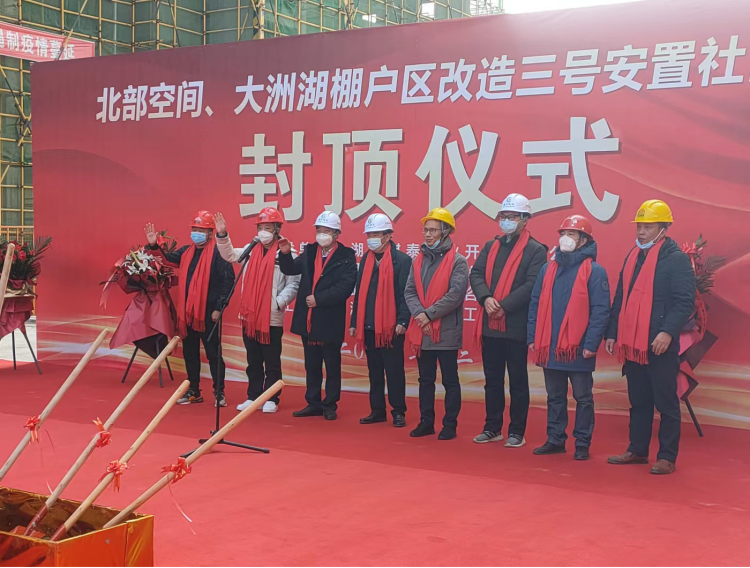 項目主體結(jié)構(gòu)順利封頂標(biāo)志著北部空間、大洲湖棚戶區(qū)改造(三號安置社區(qū))項目建設(shè)取得重要的階段性勝利,為后續(xù)裝飾裝修工程的順利施工奠定了堅實的基礎(chǔ)。桂泉建筑公司董事長賈學(xué)勝在致辭中強調(diào),主體結(jié)構(gòu)的竣工封頂,只是完成了三號安置社區(qū)項目的一部分,離工程的全部竣工還有一段距離,全體參建人員要再接再厲,發(fā)揚不怕苦、不怕累的精神,進一步嚴(yán)把質(zhì)量關(guān),加強安全治理,加快施工進度,確保項目如期竣工交付。